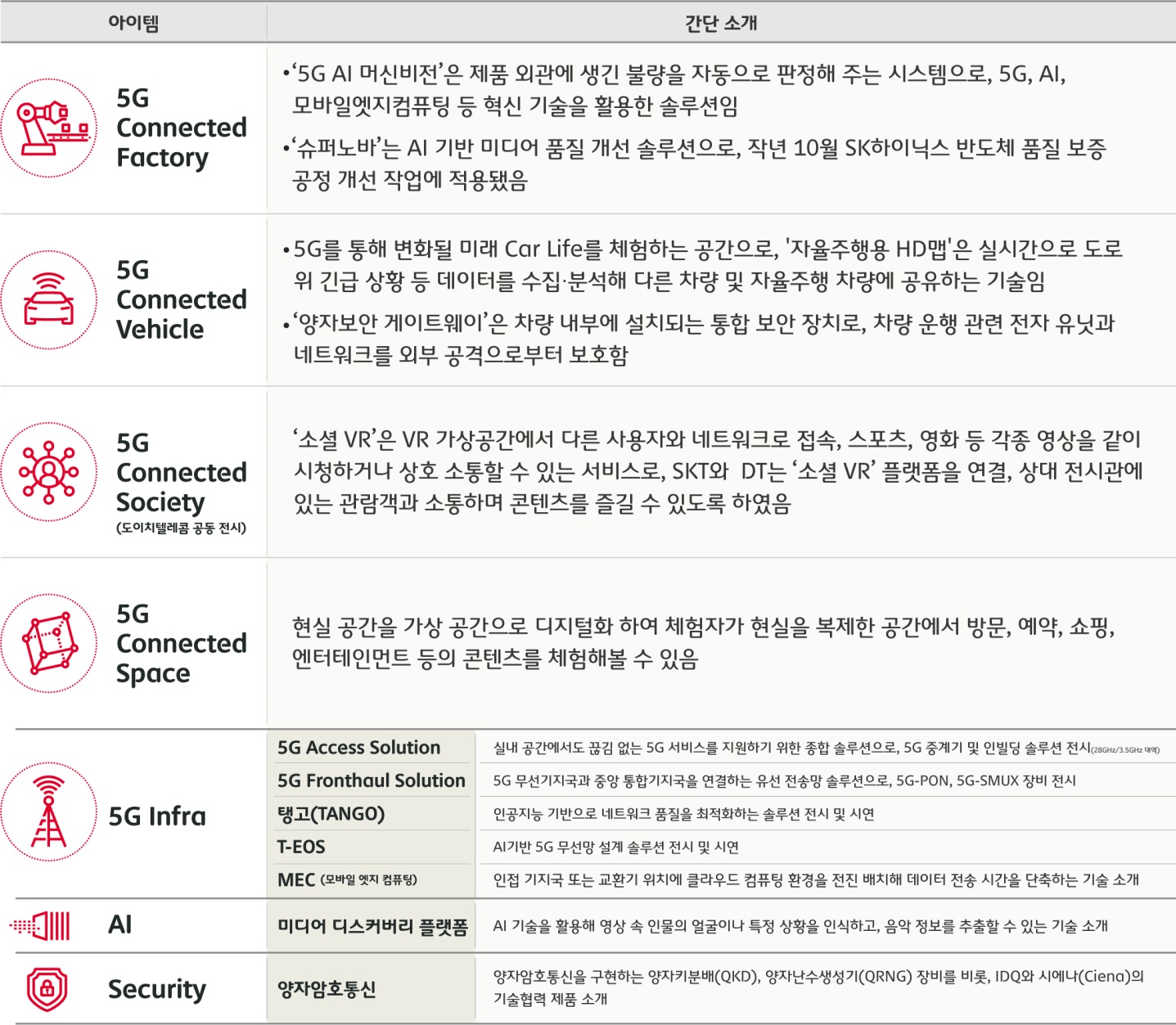 ※ SK텔레콤 ‘MWC19’ 전시 아이템 리스트